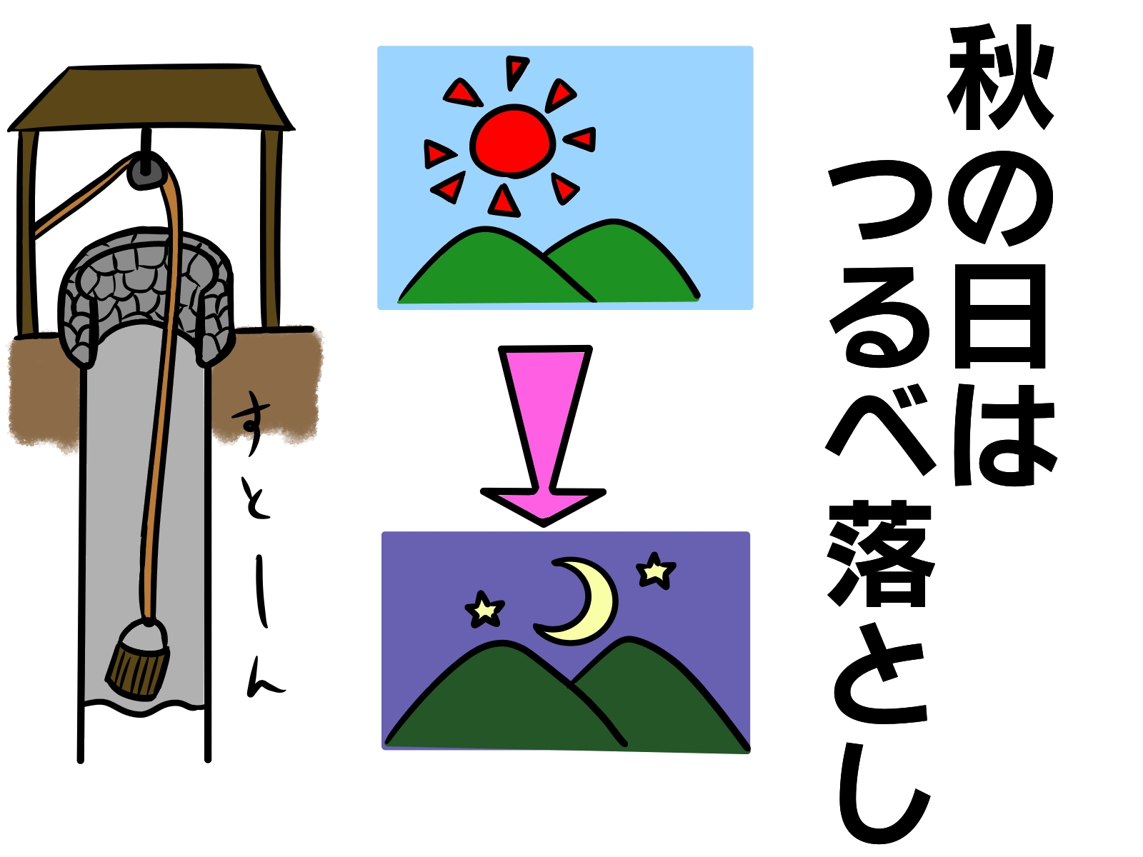 秋の日は( )落とし